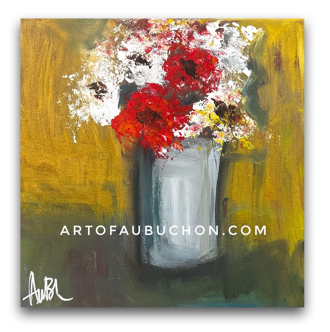 Red & White is a 12”x12” painting set in a floating frame