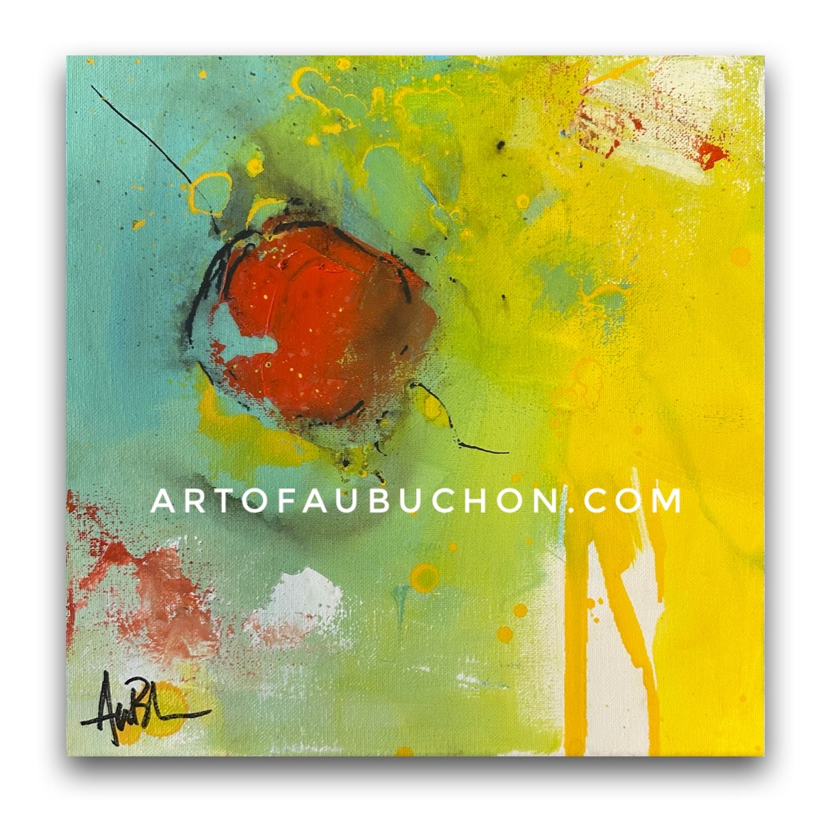 Tomato Sunday 12″x12′ set in a black floating frame